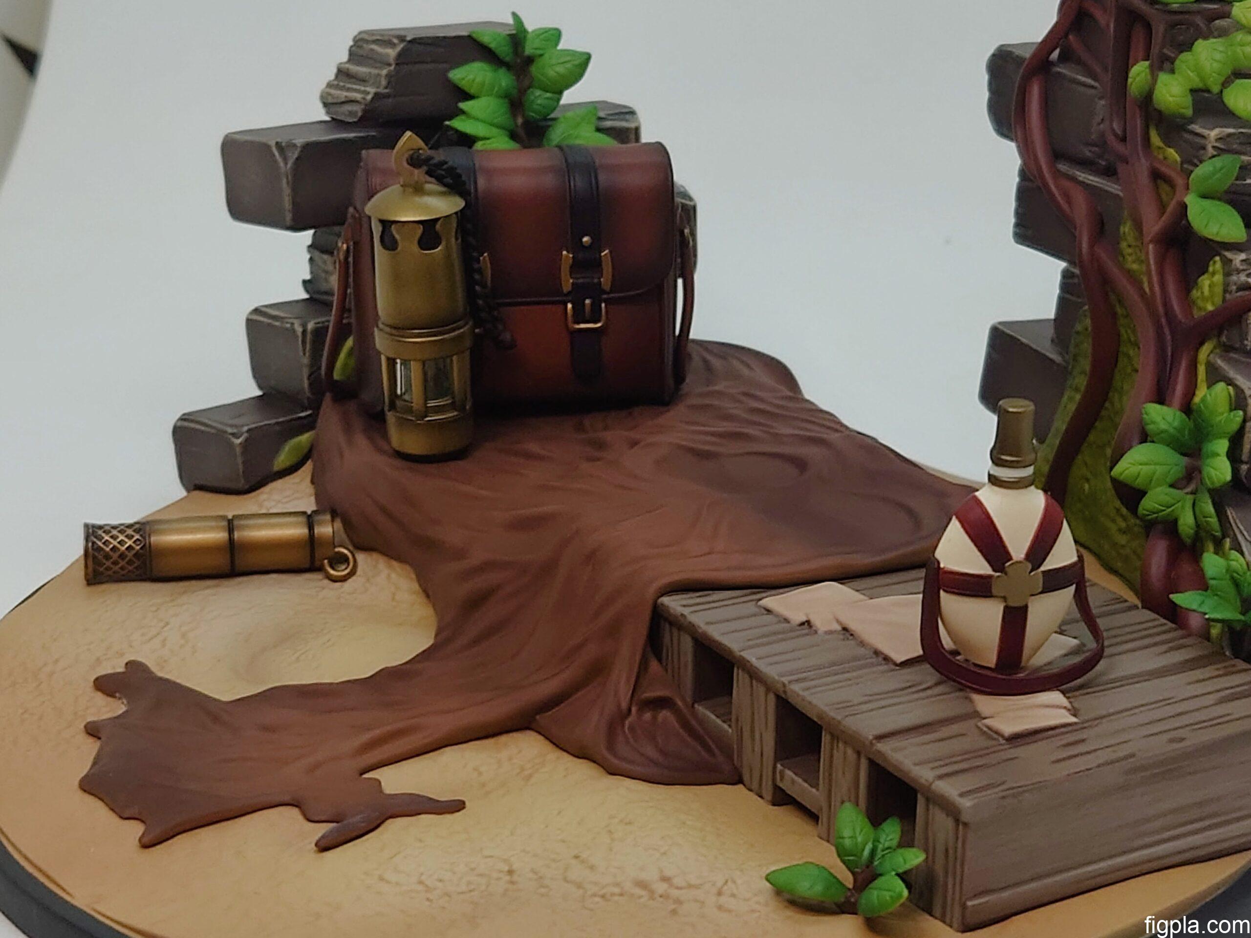 ランタンや、水筒、鞄、背景の石壁や植物など、ライザのアトリエの世界観を空間的に感じる事ができる仕上がりになっているフィギュアです。